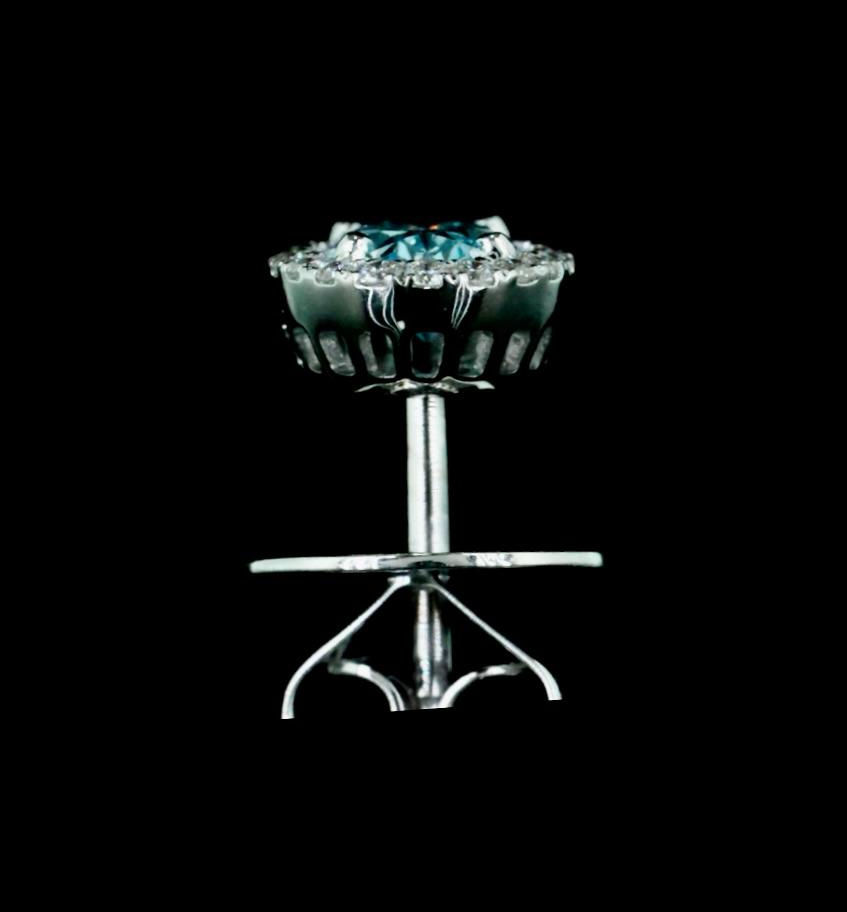 Blue Lab Diamond Halo Stud Earrings (D42)