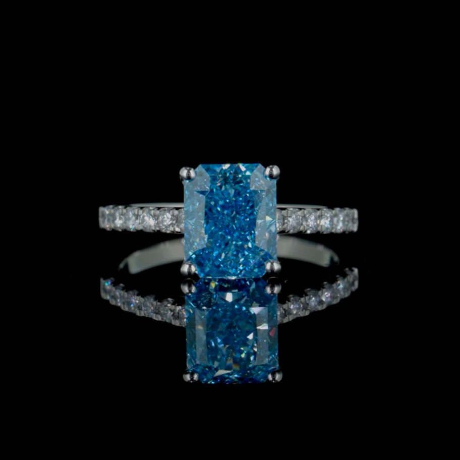 Blue Lab Diamond Solitaire(Pavé) Ring (LC1-12)
