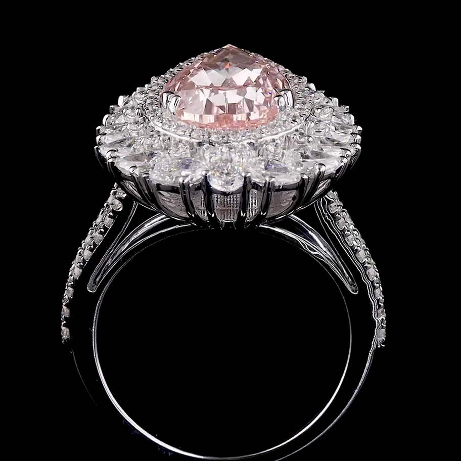 Pink Lab Diamond Halo Convertible Pendant Ring(CV172)